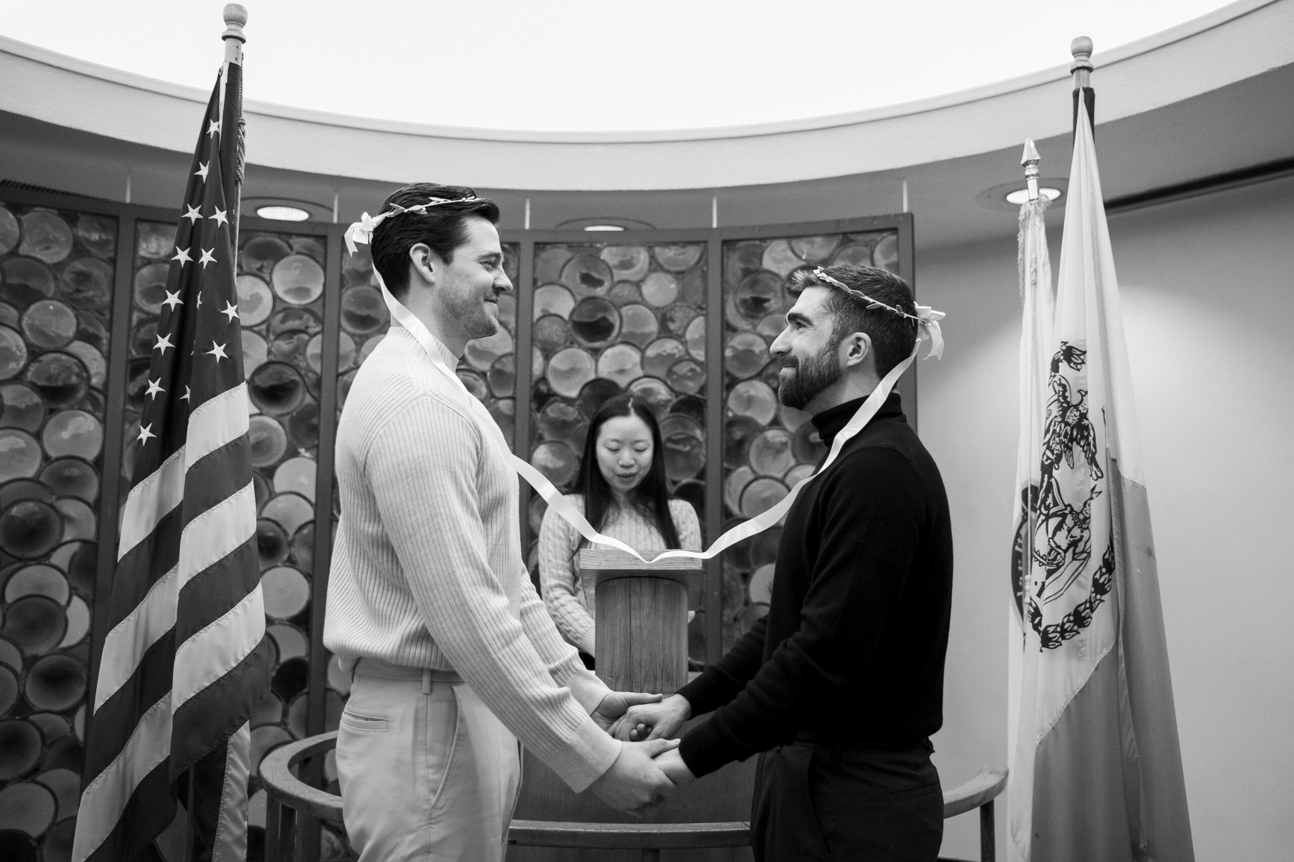 January 30th was a cold, clear winter day in Brooklyn, draped by blue skies and sunshine. After a routine breakfast of eggs and espresso, we got dressed and caught a Manhattan-bound 2 train to Brooklyn Borough Hall, where we met up with our friendly photographer and honorary witness, Briana. The three of us headed into the Brooklyn Municipal Building, checked in, took ticket C610 from the terse security guard, and patiently awaited our turn.